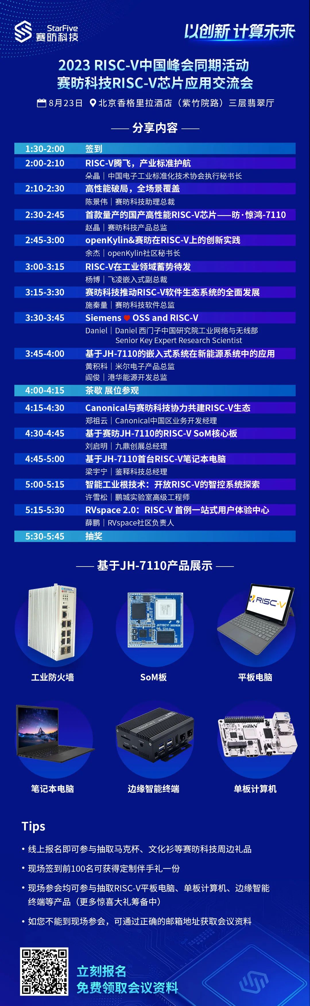 您可扫描上图二维码或点此链接https://starfive.mikecrm.com/2uhE0cF报名。诚邀大家踊跃报名,到场参会!