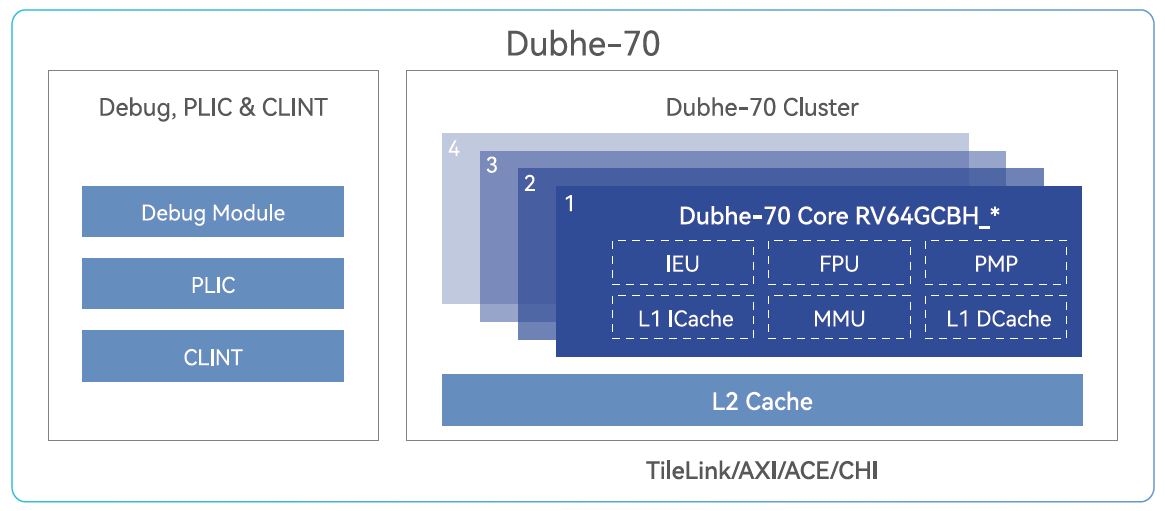 昉·天枢-70 CPU IP采用了9+级流水线三发射、乱序执行的设计,支持丰富的RISC-V指令集RV64GCBH Zicond Zicbom Zicboz Zicbop。昉·天枢-70 SPEC2006int分数可达7.2/GHz,专为高能效的计算场景而设,满足移动、桌面、人工智能的需求。