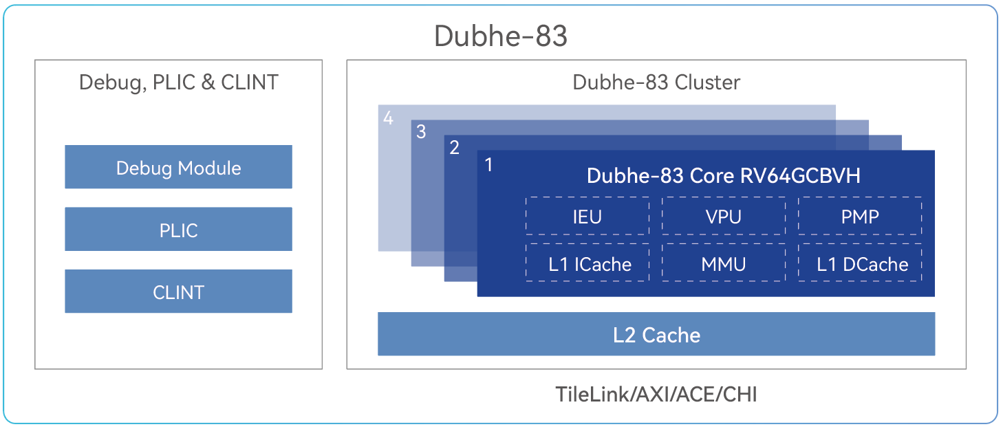 赛昉科技昉·天枢-83 CPU IP采用了10+级流水线、三发射、乱序执行的设计,遵循 RVA23 Profile,支持丰富的RISC-V指令集RV64GCBVH,支持RVV1.0,支持 Vector Crypto 所有扩展。昉·天枢-83 SPEC2006int分数可达8.5/GHz,专为高能效的计算场景而设,满足移动、桌面、人工智能的需求。经过预集成与验证,昉·天枢-83简化了SoC开发工作。昉·天枢-83提供具备内存一致性的Cluster内单核、双核及四核的配置选择,具有高度可扩展性。