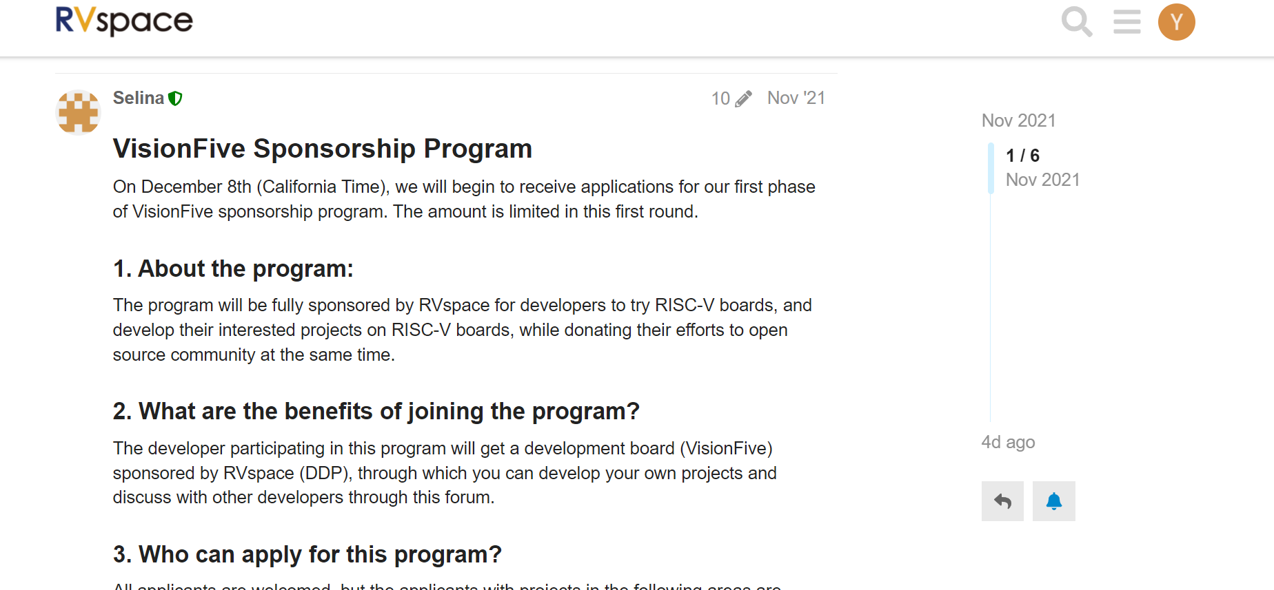 经过一个多月的层层筛选,RVspace开源社区(RVspace.org)于今日公布第一期开源项目资助名单。来自美国、日本、德国、法国等共12个国家的14名开发者获得本次资助名额。这些开发者们将会在RV....