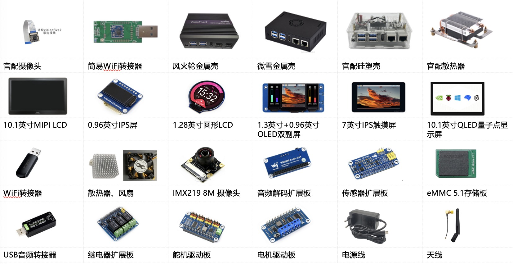 在开源硬件领域,为了助力客户及开发者在RISC-V领域的应用开发,针对不同的实际场景,赛昉科技和合作伙伴推出一系列基于JH-7110的板卡。这些板卡具备强大的计算能力和音视频处理能力,并配备USB、以太网、PCIe等丰富的外设扩展接口,提供丰富的外围配件,包括摄像头、屏幕、无线模组、算力卡、外壳等,用户可根据其产品开发需求进行选择。除此之外,板卡适配了丰富的操作系统,包括Debian、Ubuntu、OpenHarmony、openEuler、Openkylin等。