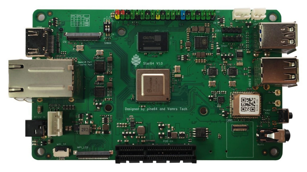 Star64单板计算机是一款配备四核 RISC-V 处理器的单板计算机,提供4GB和8GB内存2个版本。支持高达 8GB 内存和高达 128GB 存储空间(支持 microSD 扩展存储),由Pine64开发,旨在为希望开始使用 RISC-V 架构的开发人员和爱好者提供良好体验平台。