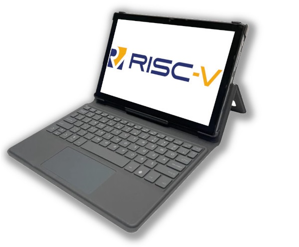 PineTab-V是全球首款RISC-V平板电脑,由Pine64设计,搭载昉·惊鸿-7110 RISC-V多媒体处理器,配备了10.1英寸宽视角IPS液晶面显示屏,两个USB-C端口,一个数字视频输出接口,200万像素前置/500万像素后置摄像头, 6000mAh容量的电池,磁性连接的背光可拆卸键盘。